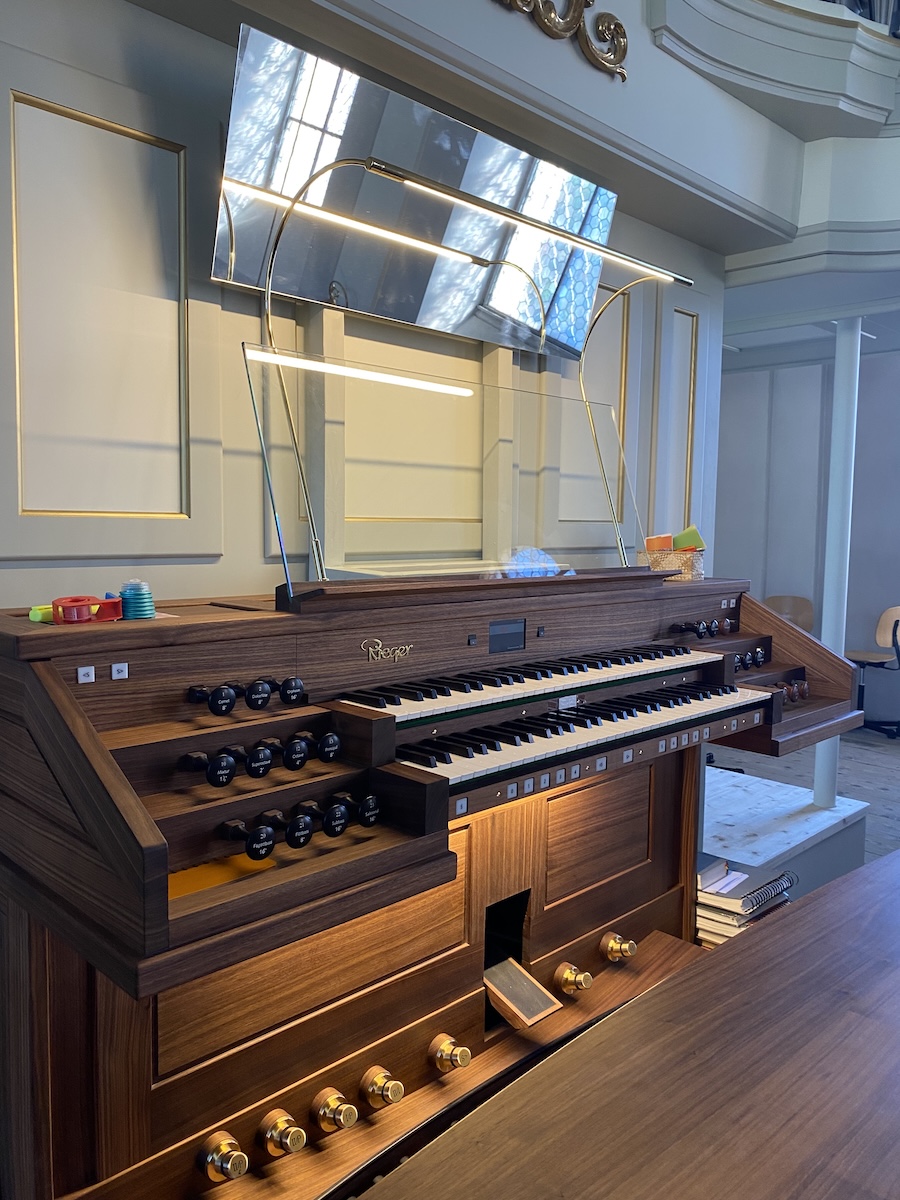 | Spielhilfen | II/I, I/P, II/P, II/P 4', Setzeranlage mit Touchscreen.